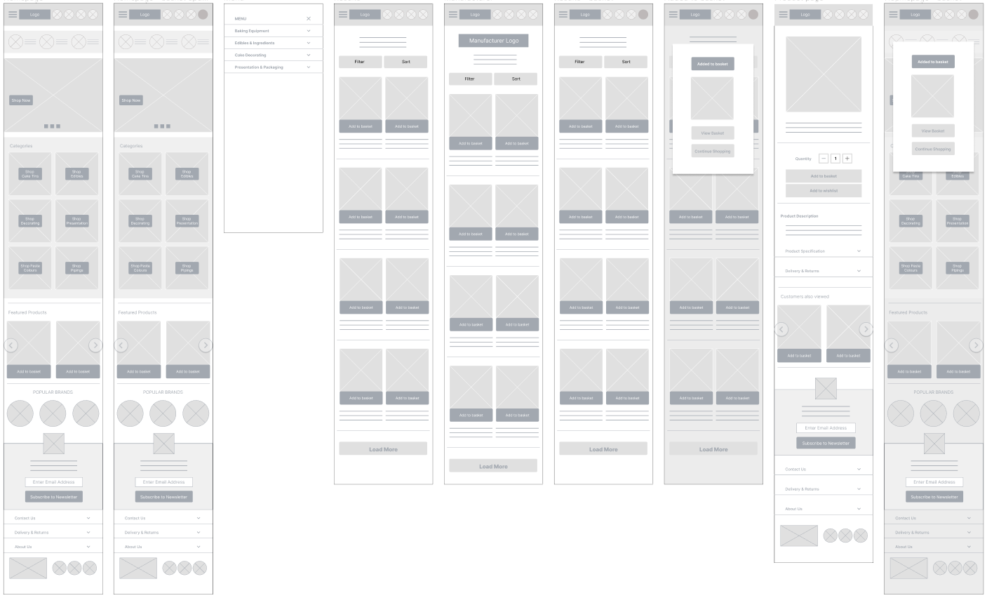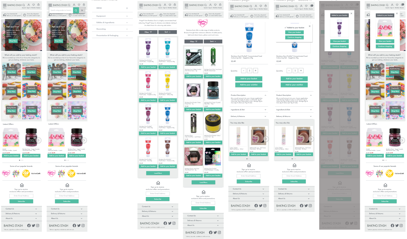 I successfully led the research and design aspects for this project. On completion of the project, we launched the Baking Stash ecommerce web app. This saw an increase in revenue for the business, allowing users to order directly on the company’s own digital platform. whilst addressing user requirements. Below are high fidelity prototypes of the web app created.